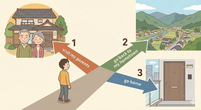 どのフレーズを使えば「親に会いに行く」のか、「土地に戻る」のか、 自分の気持ちや状況にしっかり合った伝え方が必要になります。