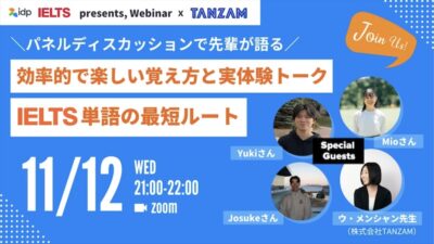 IDP Japan × TANZAM 共催セミナーのレポート。IELTSで求められる語彙力や、留学生3名による“続く単語学習法”、TANZAMの活用ポイントを分かりやすく紹介します。